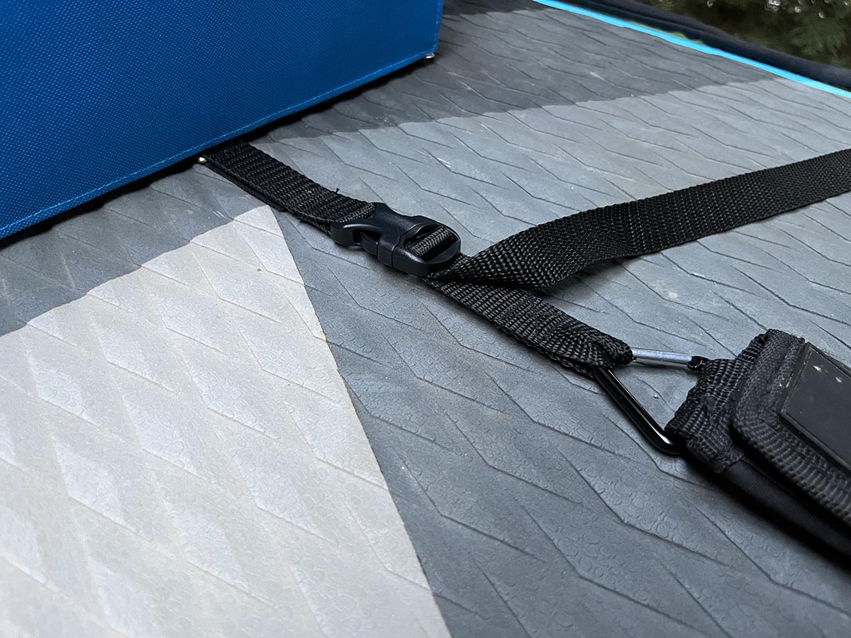 Evezés után a hevederek deszkához rögzített végeit a deszkádon hagyhatod, össze tudod vele csomagolni.