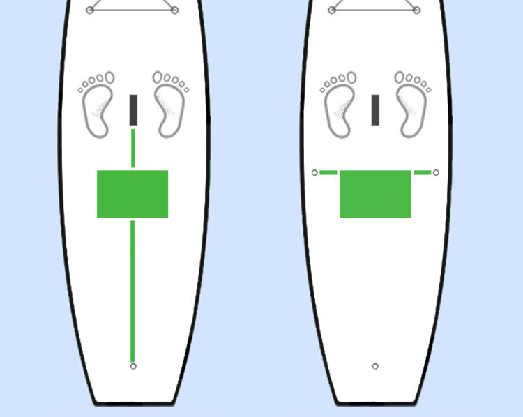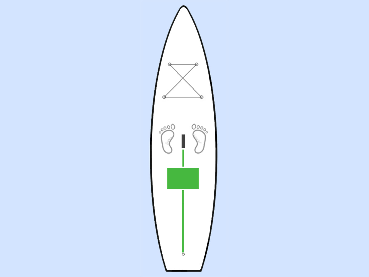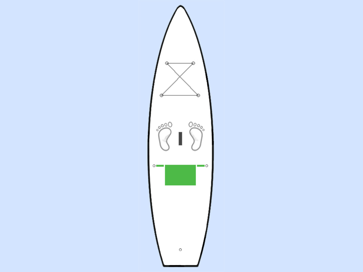 A SUP deszkák nagy többségén van egy erős hordozó markolat a deszka közepén és van egy hátsó D gyűrű a bokalánc rögzítéséhez. Ez a két bombabiztos rögzítési pont közé tudod stabilan kifeszíteni az ülőkét.